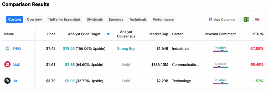 Using the Meme Stocks tool, we’ve shortlisted three meme stocks that could offer higher upside in 2026. The tool allows users to compare up to ten trending meme stocks across key metrics such as analyst ratings, price targets, and investor sentiment.