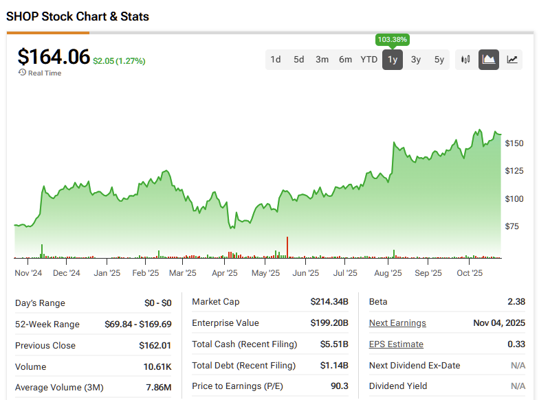 While the stock’s valuation is undeniably rich, Shopify’s consistent execution has historically warranted its premium. With a solid track record of outperforming expectations, ongoing market share gains, and potential upside to Q4 guidance, the company appears well-positioned for another beat-and-raise quarter. For these reasons, I remain bullish on Shopify heading into earnings.