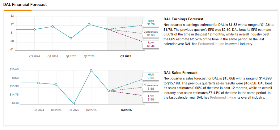 Wall Street analysts expect Delta Air Lines to report earnings of $1.53 in Q3, up 2% from the same quarter last year. Meanwhile, analysts project Q3 revenues of nearly $15.06 billion versus $15.7 billion in the year-ago quarter, according to the TipRanks Analyst Forecasts Page.