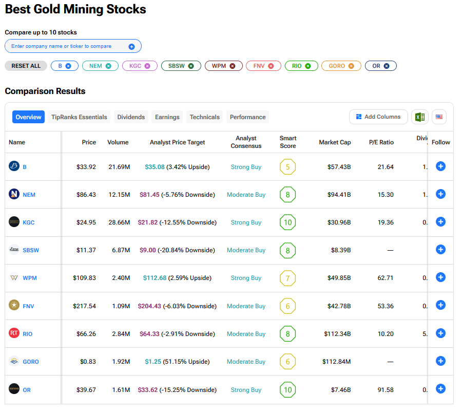 We have rounded up the best gold mining stocks to buy now using our TipRanks comparison tool.
