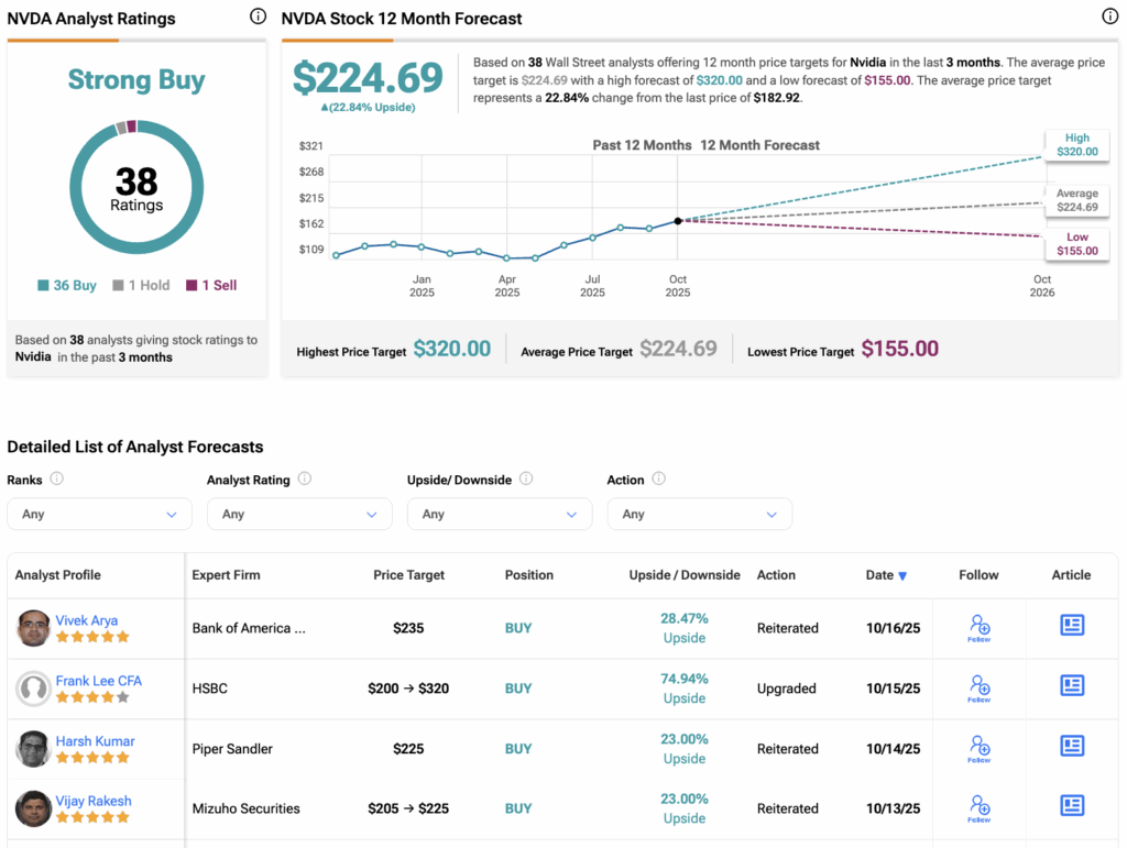 According to TipRanks, NVDA stock has a Strong Buy consensus rating based on 35 Buys, one Hold, and one Sell assigned in the last three months. At $224.69, the Nvidia average share price target implies a 22.84% upside potential from the current level.