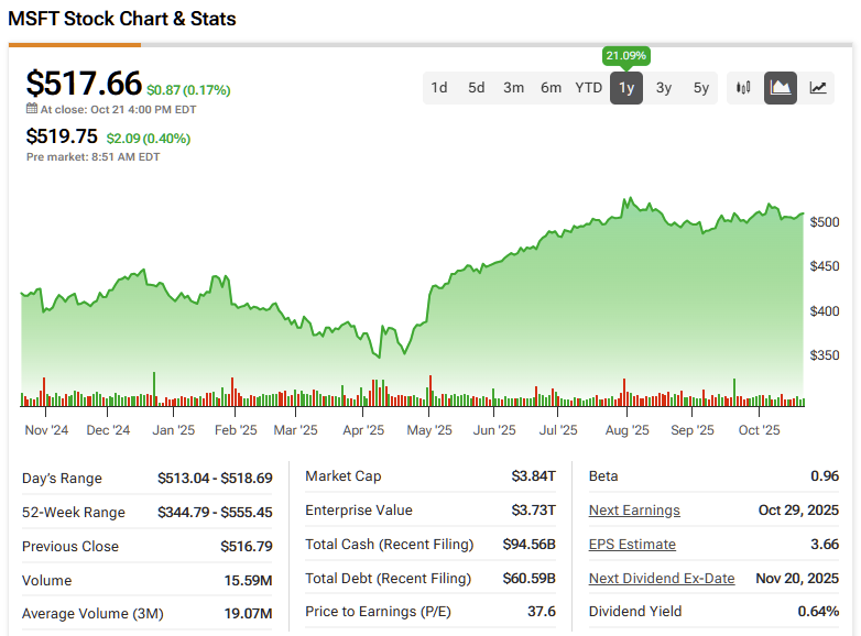 Turning to Wall Street, MSFT stock carries a Strong Buy consensus rating based on a unanimous Buy rating from all 32 analysts covering the stock. The average MSFT price target of $631.76 implies ~22% upside potential over the next 12 months.