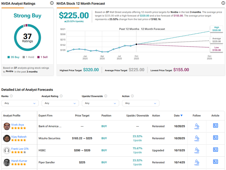 Despite concerns about growing competition from Advanced Micro Devices’ (AMD) AI GPUs and Broadcom’s (AVGO) custom AI accelerators and the U.S.-China trade war, most analysts remain bullish on NVDA stock. Their optimism is backed by Nvidia’s dominant market share in the AI GPU market, the competitive edge of its CUDA software platform, and continued innovation. Moreover, the company’s growth story is bolstered by strong leadership, strategic partnerships like the $5 billion deal with Intel (INTC) and $100 billion investment in OpenAI (PC:OPAIQ), and growth opportunities such as sovereign AI.