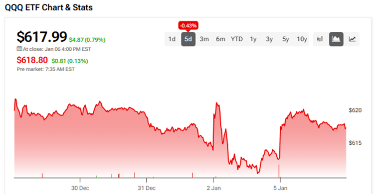 The Invesco QQQ ETF (QQQ), which tracks the performance of the Nasdaq 100 Index (NDX), gained 0.79% on Monday. Major indices closed higher, with the Dow Jones Industrial Average (DJIA) touching a record high, following the U.S.′ capture of Venezuelan leader Nicolas Maduro.