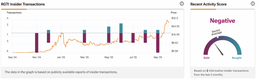 RGTI’s insider activity could be one factor that provides some insight. The stock has leaned decisively negative in recent months, raising eyebrows among investors chasing the quantum stock’s explosive rally. Directors Thomas Iannotti and Ray O. Johnson have executed significant sales, including multi-million-dollar auto-sell transactions tied to option exercises.