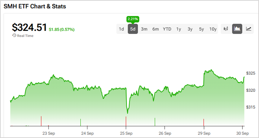 How is SMH stock faring? The VanEck Semiconductor ETF is up 2.2% in the past 5 days, and up 15.4% year-to-date.