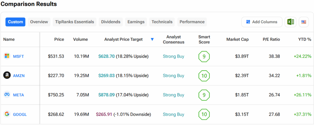 Turning to Wall Street, out of the four stocks mentioned above, analysts think that MSFT stock has the most room to run. In fact, MSFT’s average price target of $628.70 per share implies more than 18% upside potential. On the other hand, analysts expect the least from GOOGL stock, as its average price target of $265.91 equates to a loss of 1%.