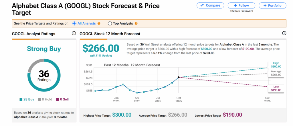 Turning to Wall Street, Alphabet’s shares currently have a Strong Buy consensus recommendation. This is based on 28 Buys and eight Holds issued by 36 Wall Street analysts over the past three months.
