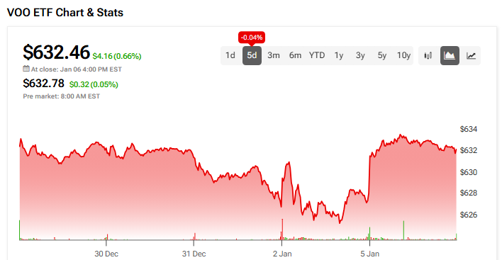 Overall, VOO has slipped 0.04% over the past five days. Even so, the ETF delivered a strong performance in 2025, gaining more than 14.7% despite the recent weakness in tech shares.