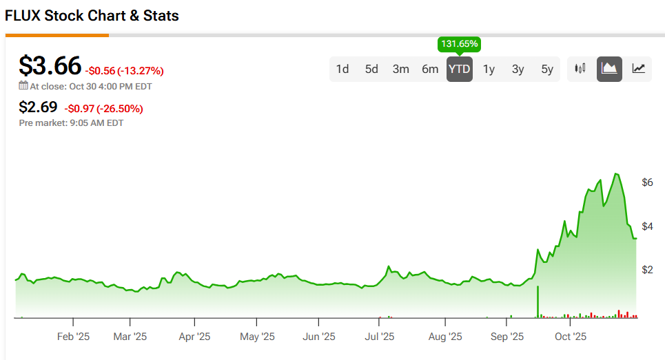 Flux Power stock was down 26.5% in pre-market trading on Friday, following a 13.27% drop yesterday. However, the stock has rallied 131.65% year-to-date and 30.71% over the past 12 months.