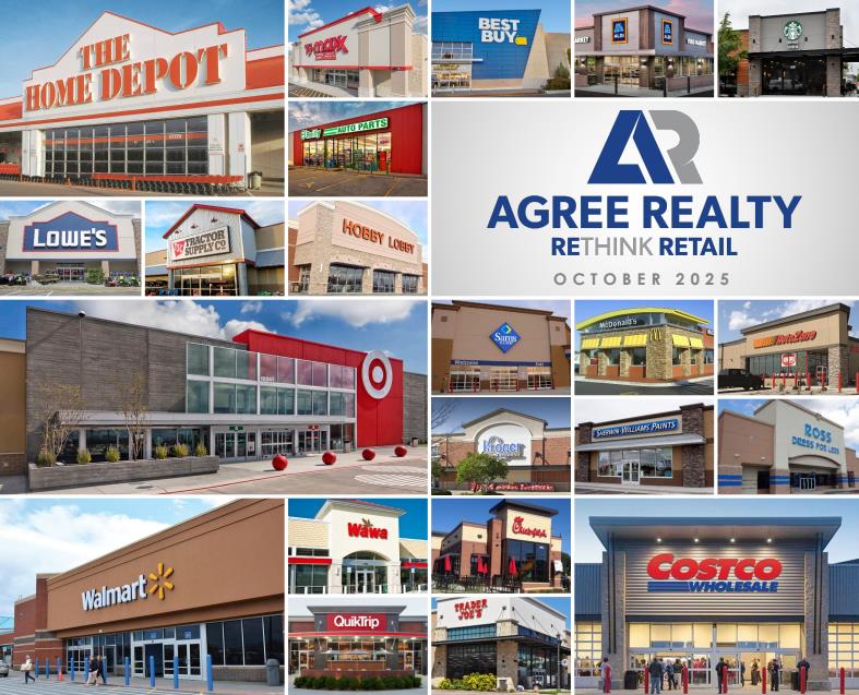 Agree Realty Corporation is a publicly traded real estate investment trust primarily engaged in the acquisition and development of properties net leased to industry-leading retail tenants. As of September 30, 2020, the Company owned and operated a portfolio of 1,027 properties, located in 45 states and containing approximately 21.0 million square feet of gross leasable area. The Company's common stock is listed on the New York Stock Exchange under the symbol ADC.
