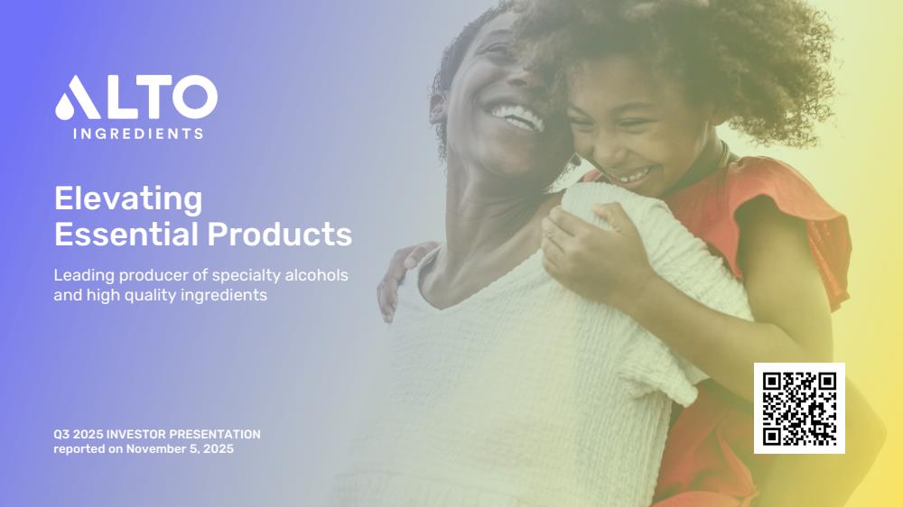 Alto Ingredients, Inc. operates in the specialty ingredients sector, focusing primarily on the production and sale of high-quality alcohol and specialty ingredients derived from renewable resources. The company serves various industries, including food and beverage, pharmaceuticals, and personal care, offering products such as fuel-grade ethanol, high-purity alcohol, and other value-added ingredients. With a commitment to sustainability and innovation, Alto Ingredients leverages advanced technologies to maximize efficiency and minimize environmental impact in its production processes.