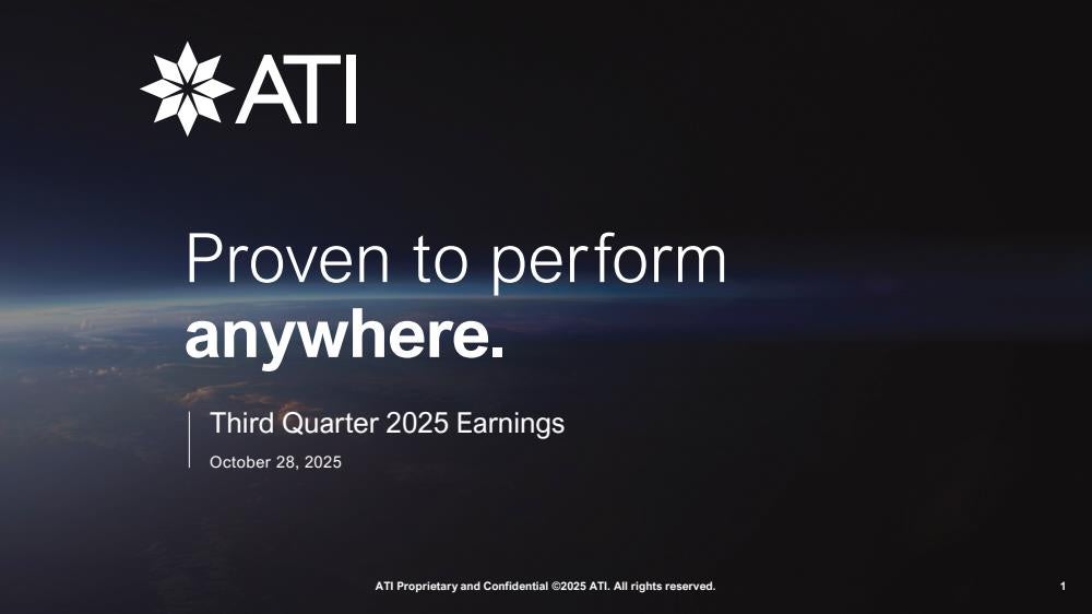 Earnings And Financial PerformanceATI announced strong 3Q25 earnings results, including revenue of $1.1bn and EPS of $0.85, supported by solid margin performance across both major operating segments.