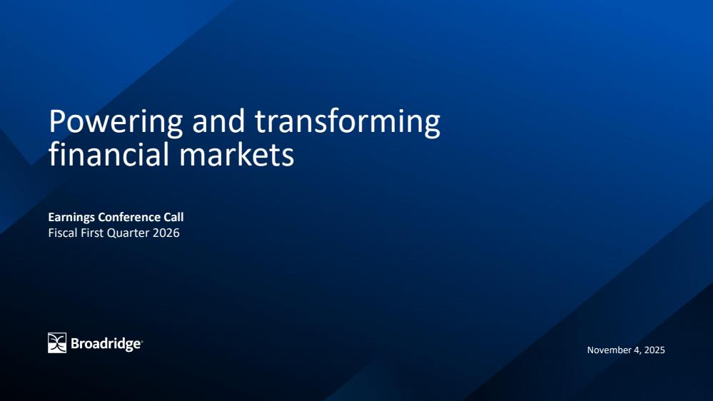 Dividend And Shareholder ValueBroadridge raised the dividend by 11%, demonstrating good visibility in the business and a commitment to maximizing shareholder value.