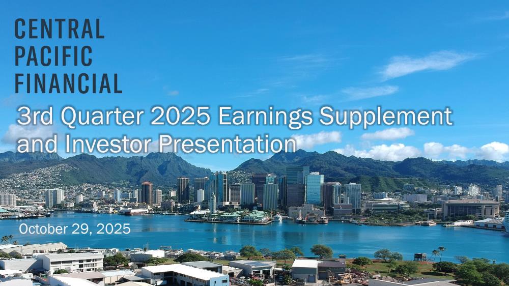 Central Pacific Financial Corp. operates as the holding company for Central Pacific Bank that provides commercial banking products and services to businesses, professionals, and individuals in the United States. It offers various deposit products and services, including personal and business checking and savings accounts, money market accounts, and time certificates of deposit. The company's lending activities comprise commercial loans, financial and agricultural loans, commercial and residential mortgages, and construction loans to small and medium-sized companies, business professionals, and real estate investors and developers, as well as home equity, and consumer loans to local homebuyers and individuals. It also provides debit cards, internet and mobile banking, cash management, full-service ATMs, digital banking services, traveler's checks, safe deposit boxes, international banking services, night depository facilities, foreign exchange and wire transfers, trust services, and retail brokerage services. In addition, the company offers wealth management products and services, including non-deposit investment products, annuities, insurance, investment management, asset custody, and general consultation and planning services. As of December 31, 2021, it operated 30 branches and 69 automated teller machines in the state of Hawaii. The company was incorporated in 1954 and is headquartered in Honolulu, Hawaii.