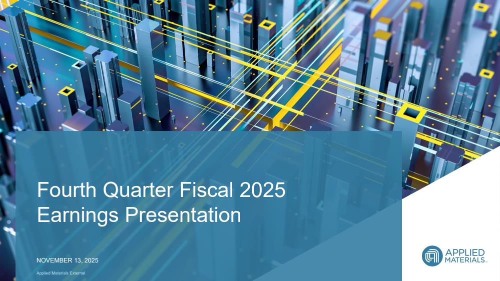 Applied Materials, Inc. provides manufacturing equipment, services, and software to the semiconductor, display, and related industries. It operates through three segments: Semiconductor Systems, Applied Global Services, and Display and Adjacent Markets. The Semiconductor Systems segment develops, manufactures, and sells various manufacturing equipment that is used to fabricate semiconductor chips or integrated circuits. This segment also offers various technologies, including epitaxy, ion implantation, oxidation/nitridation, rapid thermal processing, physical vapor deposition, chemical vapor deposition, chemical mechanical planarization, electrochemical deposition, atomic layer deposition, etching, and selective deposition and removal, as well as metrology and inspection tools. The Applied Global Services segment provides integrated solutions to optimize equipment and fab performance and productivity comprising spares, upgrades, services, remanufactured earlier generation equipment, and factory automation software for semiconductor, display, and other products. The Display and Adjacent Markets segment offers products for manufacturing liquid crystal displays; organic light-emitting diodes; and other display technologies for TVs, monitors, laptops, personal computers, electronic tablets, smart phones, and other consumer-oriented devices. The company operates in the United States, China, Korea, Taiwan, Japan, Southeast Asia, and Europe. Applied Materials, Inc. was incorporated in 1967 and is headquartered in Santa Clara, California.