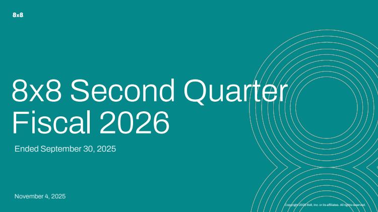 8x8, Inc. provides voice, video, chat, contact center, and enterprise-class application programmable interface (API) Software-as-a-Service solutions for small and mid-size businesses, mid-market and larger enterprises, government agencies, and other organizations worldwide. The company offers unified communications, team collaboration, video conferencing, contact center, data and analytics, communication APIs, and other services. It provides 8x8 Work, a self-contained end-to-end united communications solution that delivers enterprise voice with public switched telephone network connectivity, video meetings, and unified messaging, as well as direct messages, public and private team messaging rooms, and short and multimedia services; 8x8 Contact Center, a multi-channel cloud-based contact center solution; and 8x8 CPaaS, a set of global communications Platform-as-a-Service. The company also offers and X1 through X4 and X5 through X8, which provide enterprise-grade voice, unified communications, and video meetings and team collaboration, and contact center solutions. It markets its services to end users through search engine marketing and optimization, third-party lead generation sources, industry conferences, trade shows, Webinars, and digital advertising channels, as well as direct sales organization. The company was incorporated in 1987 and is headquartered in Campbell, California.