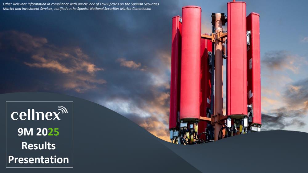 Cellnex Telecom, S.A. operates infrastructure for wireless telecommunication in Austria, Denmark, Spain, France, Ireland, Italy, the Netherlands, Poland, Portugal, the United Kingdom, Sweden, and Switzerland. It operates through three segments: Telecom Infrastructure Services, Broadcasting Networks, and Network Services and Others. The company offers co-location services in its infrastructure for mobile operators to install telecommunications and wireless broadcasting equipment; distributed antenna system and small cells, a network of spatially separated antenna nodes connected to a common source through transport medium that provides wireless services. It also provides broadcasting network services, including digital terrestrial television (DTT), hybrid DTT, satellite DTT services, and premium DTT services; FM and digital radio services; and internet media services, such as online multiscreen video solutions, online business support solutions, and content distribution services. In addition, it offers data transportation services comprising satellite transportation, digital terrestrial circuits, Amazon direct connect, and internet throughput services; security and control services, which include security and emergency networks, terminals, forest fire early warning systems, and control centers; and smart communication networks, including wireless broadband, irrigation management services in rural settings, and Internet of Things services. Further, it offers smart services for city management; engineering/consulting, and operation and maintenance services; and constructs and operates optic fiber telecommunications. The company serves mobile network operators, broadcasters, and administrations. The company was formerly known as Abertis Telecom Terrestre, S.A.U. and changed its name to Cellnex Telecom, S.A. in April 2015. Cellnex Telecom, S.A. was incorporated in 2008 and is headquartered in Madrid, Spain.