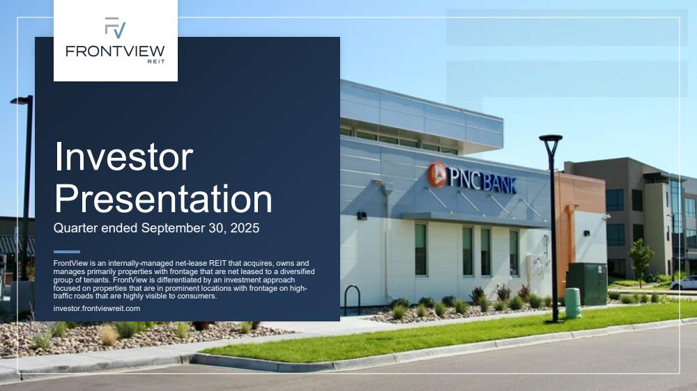 FrontView REIT, Inc. released its earnings results on Nov 11, 2025. The company reported $0.19 earnings per share for the quarter, beating the consensus estimate of -$0.051 by $0.241.