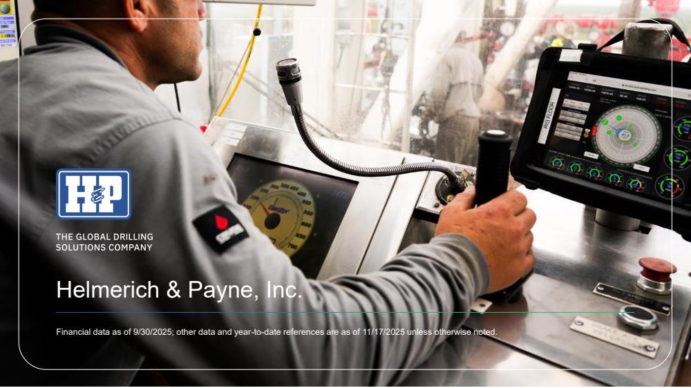 Helmerich & Payne, Inc., together with its subsidiaries, provides drilling services and solutions for exploration and production companies. The company operates through three segments: North America Solutions, Offshore Gulf of Mexico, and International Solutions. The North America Solutions segment drills primarily in Colorado, Louisiana, Montana, Nevada, New Mexico, North Dakota, Ohio, Oklahoma, Pennsylvania, Texas, Utah, West Virginia, and Wyoming. It also focuses on developing, promoting, and commercializing technologies designed to enhance the drilling operations, as well as wellbore quality and placement. The Offshore Gulf of Mexico segment has drilling operations in Louisiana and in U.S. federal waters in the Gulf of Mexico. The International Solutions segment conducts drilling operations in Argentina, Bahrain, Colombia, and the United Arab Emirates. As of September 30, 2021, the company operated a fleet of 236 land rigs in North America; 30 international land rigs; and 7 offshore platform rigs. It also owns, develops, and operates commercial real estate properties. The company's real estate investments include a shopping center comprising approximately 390,000 leasable square feet; and approximately 176 acres of undeveloped real estate located in Tulsa, Oklahoma. Helmerich & Payne, Inc. was founded in 1920 and is headquartered in Tulsa, Oklahoma.