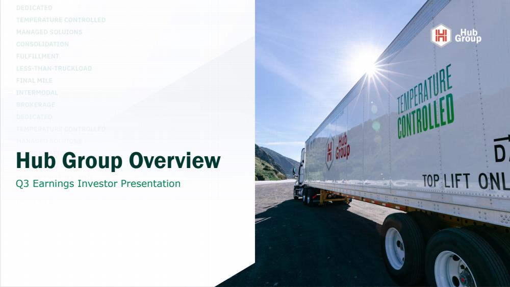 Hub Group, Inc., a supply chain solutions provider, offers transportation and logistics management services in North America. The company's transportation services include intermodal, truckload, less-than-truckload, flatbed, temperature-controlled, and dedicated and regional trucking, as well as final mile, railcar, small parcel, and international transportation. Its logistics services comprise full outsource logistics solution, transportation management, freight consolidation, warehousing and fulfillment, final mile delivery, and parcel and international services. The company also provides dry van, expedited, less-than-truckload, refrigerated, and flatbed truck brokerage services. It offers a fleet of approximately 1,000 tractors and 4,600 trailers to its customers, as well as the driver staffing, management, and infrastructure. The company serves a range of industries, including retail, consumer products, and durable goods. As of December 31, 2021, it owned approximately 43,750 dry, 53-foot containers, as well as 450 refrigerated, 53-foot containers; and leased approximately 250 dry, 53-foot containers. The company was founded in 1971 and is headquartered in Oak Brook, Illinois.