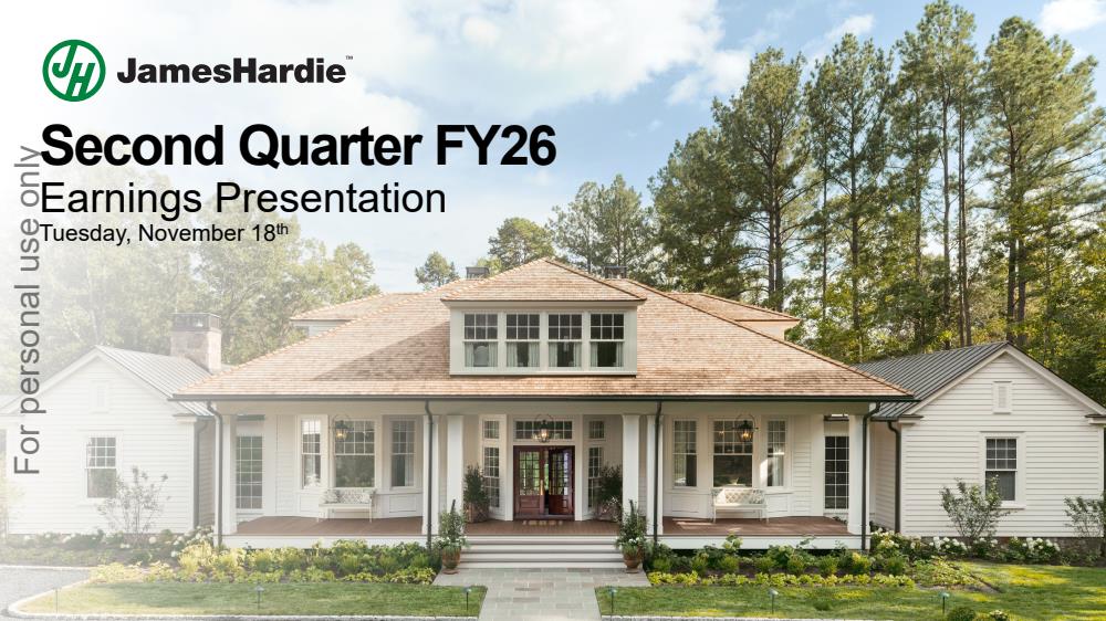 James Hardie Industries plc, together with its subsidiaries, manufactures and sells fiber cement, fiber gypsum, and cement bonded building products for interior and exterior building construction applications primarily in the United States, Australia, Europe, New Zealand, the Philippines, and Canada. The company operates through three segments: North America Fiber Cement, Asia Pacific Fiber Cement, and Europe Building Products. It offers fiber cement interior linings, exterior siding products, and related accessories; and various fiber cement building materials for a range of applications, including external siding, internal walls, floors, ceilings, soffits, trim, fences, and facades. The company also provides fiber gypsum and cement-bonded boards for applications, such as timber frame construction, dry lining, DIY, and structural fire protection. Its products are used in various markets comprising new residential construction and commercial construction markets. James Hardie Industries plc was founded in 1888 and is based in Dublin, Ireland.