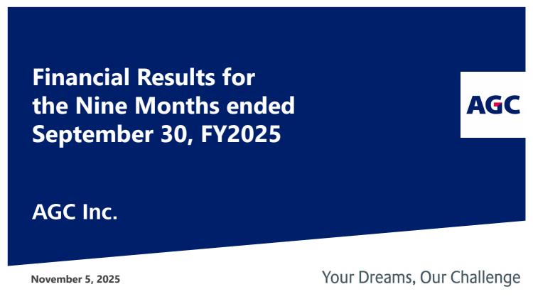AGC Inc. manufactures and sells glass, electronics, chemicals, and ceramics worldwide. The company offers architectural glass products, including laminated, insulating, wired, solar control, toughened, decorative, sound insulation, float and patterned, and industrial glasses; structural glazing systems; and automotive glass, such as laminated, tempered, and privacy glasses, as well as integrated glass antennas, patterned glazing products, and module assembly windows. It also provides glass substrates used for thin-film-transistor liquid crystal displays and OLEDs; synthetic fused silica glass, synthetic quartz crystal, silicon carbide, CMP slurry, through glass Vias, high refractive index glass, DOE diffuser, glass ceramics substrate, optical planar device, IR cut filter, aspherical glass and molded lens, micro lens array, and fly eye and condenser lens products; polycarbonate and optical sheets, thin sheets, and films; and glass frits and paste, as well as glass substrate for semiconductor packaging, and other electronic materials. In addition, the company offers cover glass for smartphones and tablet devices; glass substrates for photovoltaic devices and touch panels; specialty glass; extra clear float glass; transparent conductive oxide glass for a-Si type solar module; and ultra-thin glass for electronics devices. Further, it provides chlor-alkali, polyurethanes, fluoro, and specialty chemical products; high thermal insulation ceramics wall for furnaces; and ceramic beads, sputtering targets, abrasion resistant ceramics, alumina cement, engineering fine ceramics, and ceramics molding agent for 3D printers. Additionally, the company engages in the digital signage on glass, copper clad laminate, and plastic optical fiber businesses; and gas and solvents, and life Science business. The company was formerly known as Asahi Glass Co., Ltd. and changed its name to AGC Inc. in July 2018. AGC Inc. was founded in 1907 and is headquartered in Tokyo, Japan.