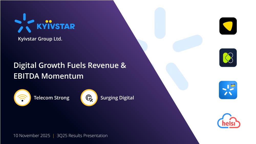 Financial PerformanceKyivstar reported solid results, with revenue and adjusted profitability ahead of expectations driven by stability in the core telecom segment and strong digital growth.