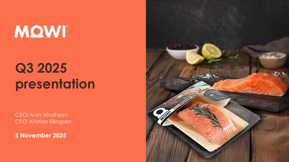 Mowi ASA, a seafood company, produces and supplies farmed salmon products worldwide. The company operates through three segments: Feed, Farming, and Sales and Marketing. It is involved in the salmon feed production, salmon farming and primary processing, and seafood secondary processing activities. The company offers whole gutted fish, including Label Rouge and organic salmon; and white fish and other seafood products, as well as fillets, steaks, cutlets, portions, loins, kebabs, and steak combos. It also provides value added products, such as breaded, pre-fried, dusted, marinated, grilled, battered, topped, filled with sauce, delicatessen, fresh fish ready meal, and smoked fish products. The company offers its products under the Mowi, Mowi Salmon, Donegal Silver, Admiral's, Pieters, Laschinger, Kritsen, Ducktrap River, Harbour Salmon Co., Rebel Fish, Supreme Salmon, Olav's, Northern Harvest, and Mowi Nutrition brand names. The company was formerly known as Marine Harvest ASA and changed its name to Mowi ASA in December 2018. Mowi ASA was founded in 1964 and is headquartered in Bergen, Norway.