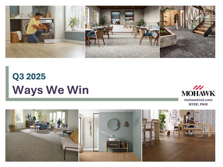 Mohawk Industries, Inc. designs, manufactures, sources, distributes, and markets flooring products for remodeling and new constructions of residential and commercial spaces in the United States, Europe, Russia, and internationally. It operates through three segments: Global Ceramic, Flooring North America (Flooring NA), and Flooring Rest of the World (Flooring ROW). The Global Ceramic segment provides a range of ceramic tile, porcelain tile, and natural stone products; and sources, markets, and distributes other tile related products. This segment markets and distributes its products under the American Olean, Daltile, Eliane, EmilGroup, KAI, Kerama Marazzi, Marazzi, and Ragno brands. The Flooring NA segment offers floor covering product lines in a range of colors, textures, and patterns, including carpets, carpet tiles, rugs and mats, carpet pads, hardwood, laminate, medium-density fiberboards, luxury vinyl tiles (LVT), and sheet vinyl products. This segment markets and distributes its flooring products under the Aladdin Commercial, Durkan, IVC, Karastan, Mohawk, Mohawk Group, Mohawk Home, Pergo, Portico, and Quick-Step brands. The Flooring ROW segment provides wood flooring and vinyl flooring, as well as laminates, roofing elements, sheet vinyl, LVT, insulation boards, medium-density fiberboards, chipboards, and other woods products under the Feltex, Godfrey Hirst, Hycraft, IVC Commercial, IVC Home, Leoline, Moduleo, Pergo, Quick-Step, and Unilin and Xtratherm brands; and licenses its intellectual property to flooring manufacturers. Mohawk Industries, Inc. was incorporated in 1988 and is headquartered in Calhoun, Georgia.