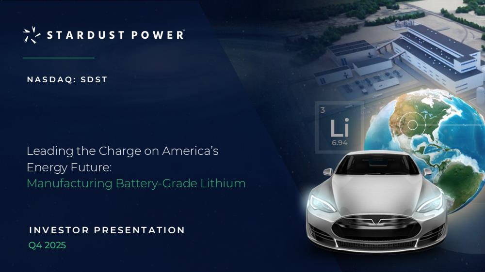 Stardust Power (SDST) is an innovative energy company that specializes in harnessing renewable energy sources, with a focus on solar and wind power solutions. The company operates in the clean energy sector, providing cutting-edge technology and services aimed at promoting sustainable energy use. Stardust Power's core products include solar panels, wind turbines, and integrated energy management systems designed to optimize energy efficiency for both residential and commercial clients.