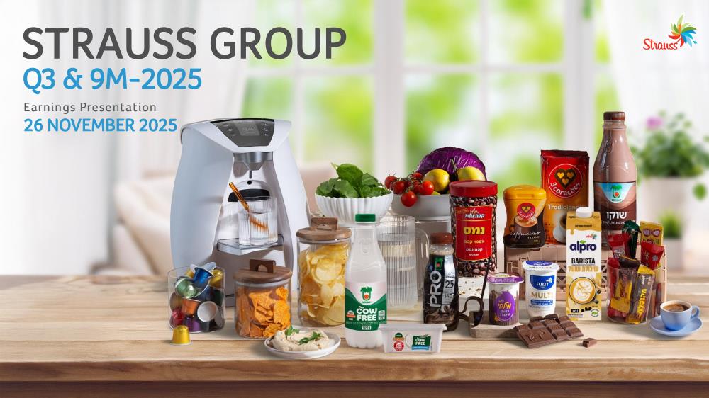 Strauss Group Ltd., together with its subsidiaries, develops, manufactures, markets, and sells various food and beverage products in Israel, North America, Brazil, Europe, and internationally. The company operates through six segments: Health & Wellness; Fun & Indulgence; Israel Coffee; International Coffee; International Dips & Spreads; and Strauss Water. The Health & Wellness segment provides yogurts, dairy desserts, dairy-free tahini desserts, soft cheeses, flavored milk beverages, chilled salads, cut vegetables, fresh pasta products, cereal and granola bars, honey products, olive oils, fruit preserves, cooking sauces, lemon juices, and natural maple syrups. This segment also sells and distributes natural juices, butter spreads, and plant-based probiotic desserts. The Fun & Indulgence segment offers sweet snack bars, chocolate tablets, sweet spreads, candies, chewing gums, cakes and cookies, biscuits, wafers, and salty snacks. The Israel Coffee segment develops, manufactures, sells, markets, and distributes a range of coffee products, chocolate powders, and other drink powders; sells coffee beans; and retails coffee products. The International Coffee segment develops and manufactures various coffee products and powder drinks; markets and distributes coffee machines; and purchases and processes green coffee, corn products, cashew-based dairy substitutes and juice powders. The International Dips & Spreads segment manufactures, markets, and sells chilled dips and spreads under the Sabra, Obela, and Florentin brands. The Strauss Water segment also develops, manufactures, distributes, and sells filtration, purification, and carbonation systems for drinking water. The company was formerly known as Strauss-Elite Ltd. and changed its name to Strauss Group Ltd. in February 2007. Strauss Group Ltd. was incorporated in 1933 and is headquartered in Petah Tikva, Israel. Strauss Group Ltd. is a subsidiary of Strauss Holdings Ltd.