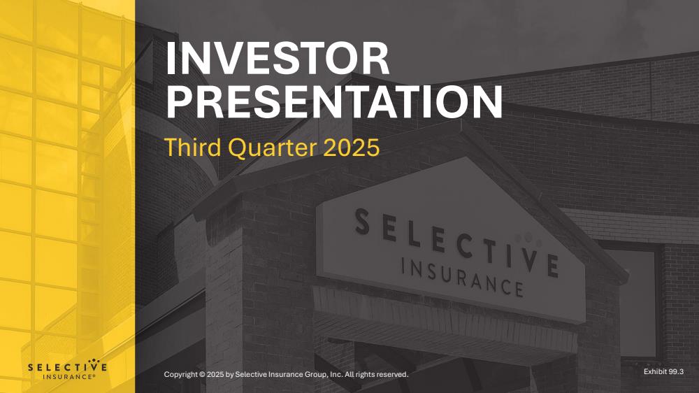Selective Insurance Group, Inc., together with its subsidiaries, provides insurance products and services in the United States. It operates through four segments: Standard Commercial Lines, Standard Personal Lines, E&S Lines, and Investments. The company offers property insurance products, which covers the financial consequences of accidental loss of an insured's real property, personal property, and/or earnings due to the property's loss; and casualty insurance products that covers the financial consequences of employee injuries in the course of employment, and bodily injury and/or property damage to a third party, as well as flood insurance products. It also invests in fixed income investments and commercial mortgage loans, as well as equity securities and alternative investment portfolio. The company offers its insurance products and services to businesses, non-profit organizations, local government agencies, and individuals through independent retail agents and wholesale general agents. Selective Insurance Group, Inc. was founded in 1926 and is headquartered in Branchville, New Jersey.