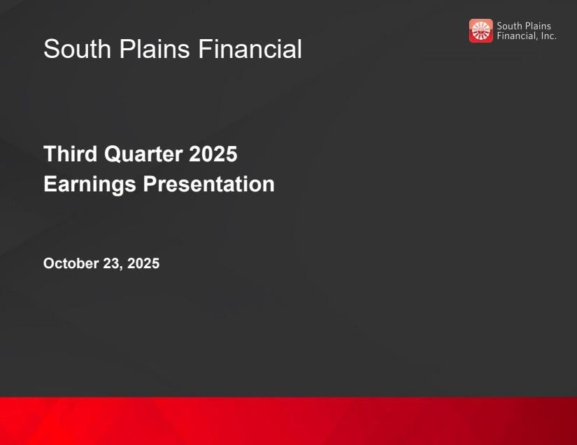 South Plains Financial Inc released its earnings results on Oct 23, 2025. The company reported $0.96 earnings per share for the quarter, beating the consensus estimate of $0.855 by $0.105.