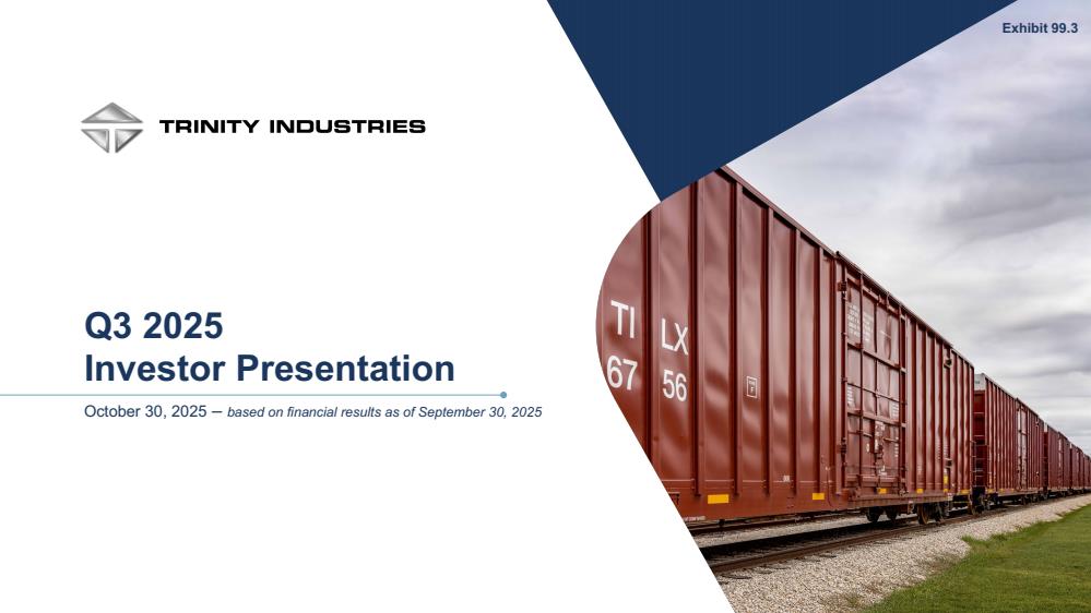Trinity Industries, Inc. provides rail transportation products and services under the TrinityRail name in North America. It operates in two segments, Railcar Leasing and Management Services Group, and Rail Products Group. The Railcar Leasing and Management Services Group segment leases freight and tank railcars; originates and manages railcar leases for third-party investors; and provides fleet maintenance and management services. As of December 31, 2021, it had a fleet of 106,970 owned or leased railcars. This segment serves industrial shipper and railroad companies operating in agriculture, construction and metals, consumer products, energy, and refined products and chemicals markets. The Rail Products Group segment manufactures freight and tank railcars for transporting various liquids, gases, and dry cargo; and offers railcar maintenance and modification services. This segment serves railroads, leasing companies, and industrial shippers of products in the agriculture, construction and metals, consumer products, energy, and refined products and chemicals markets. It sells or leases products and services through its own sales personnel and independent sales representatives. Trinity Industries, Inc. was incorporated in 1933 and is headquartered in Dallas, Texas.