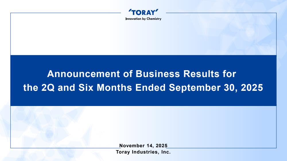 Toray Industries, Inc., together with its subsidiaries, manufactures, processes, and sells fibers and textiles, performance chemicals, carbon fiber composite materials, environment and engineering products, and life science products in Japan, China, North America, Europe, and internationally. The company offers filament yarns, staple fibers, and spun yarns, as well as woven and knitted fabrics of nylon, polyester, acrylics, and others; non-woven fabrics; ultra-fine fibers; and apparel products. It also provides nylon, ABS, PBT, PPS, and other resins and molded products; polyolefin foam products; polyester, polyethylene, polypropylene, and other films; processed film products; raw materials for synthetic fibers and other plastics; fine chemicals; electronic and information materials; and graphic materials. In addition, the company offers carbon fibers, carbon fiber composite materials, and molded products; analysis, physical evaluation, research, and other services; and pharmaceuticals, medical devices, etc. Further, it provides engineering services; condominiums; industrial equipment and machinery; IT-related equipment; water treatment membranes and related equipment; and materials for housing, building, and civil engineering applications. The company was formerly known as Toyo Rayon Co., Ltd. and changed its name to Toray Industries, Inc. in 1970. The company was incorporated in 1926 and is headquartered in Tokyo, Japan.