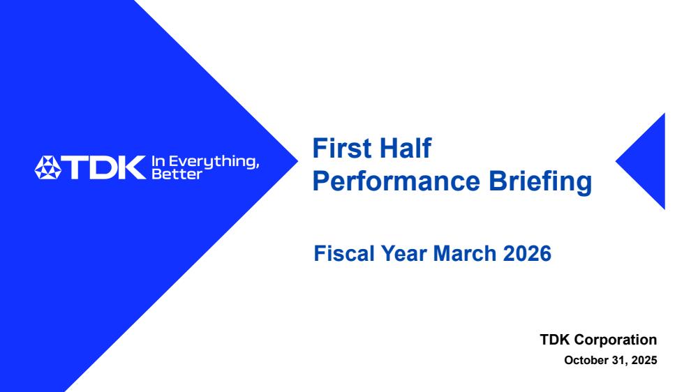TDK Corporation, together with its subsidiaries, engages in manufacture and sale of electronic components in Japan, Europe, China, Asia, the Americas, and internationally. The company operates through four segments: Passive Components, Sensor Application Products, Magnetic Application Products, Energy Application Products, and Other segments. The Passive Components segment offers ceramic capacitors, aluminum electrolytic capacitors, film capacitors, inductive devices, ferrite cores, transformers, high-frequency devices, piezoelectric materials, and circuit protection components. The Sensor Application Products segment provides temperature and pressure, magnetic, and MEMS sensors. The Magnetic Application Products segment offers hard disk drives (HDD) heads, HDD suspension assemblies, and magnets. The Energy Application Products segment provides energy devices, such as rechargeable batteries and power supplies. The Other segment provides mechatronics production equipment and camera module micro actuators for smartphones and other products. The company was formerly known as Tokyo Denki Kagaku Kogyo K.K. and changed its name to TDK Corporation in 1983. TDK Corporation was founded in 1935 and is headquartered in Tokyo, Japan.
